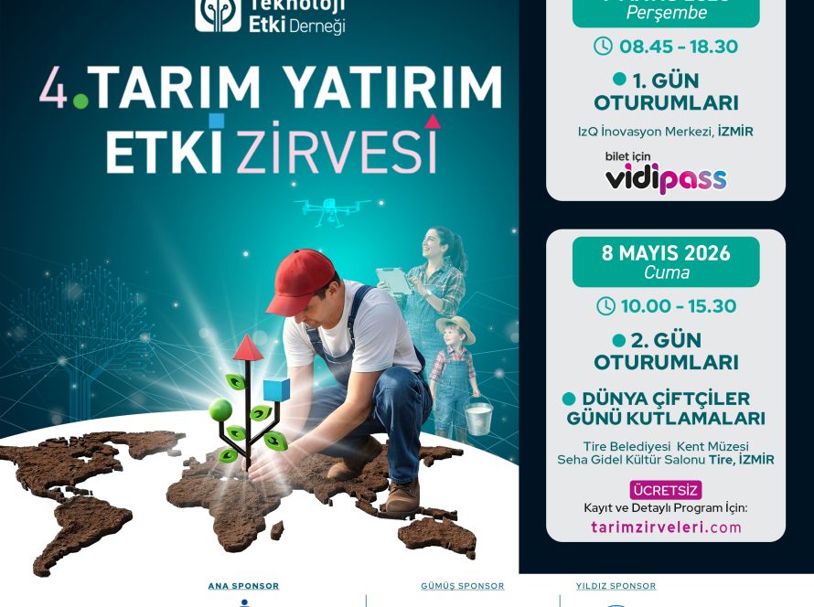 4. Tarım Yatırım Etki Zirvesi, 7–8 Mayıs 2026 tarihlerinde İzmir’de gerçekleşecek. Zirvede; yerel değerlerden dijital dönüşüme, yatırım ve finansmandan ölçülebilir etkiye uzanan başlıklar, tarım–gıda sistemine bütüncül bir bakışla ele alınacak. Dünya Çiftçiler Günü’nün de birlikte kutlanacağı etkinlikte sektörün tüm paydaşları aynı zeminde buluşacak.